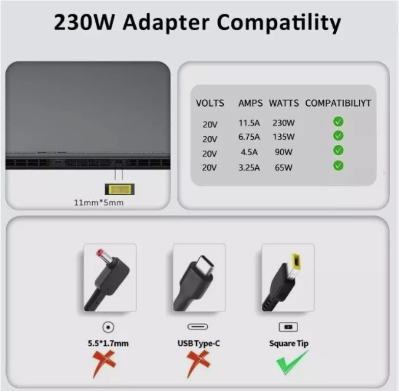Original Lenovo 230W Power AC Adapter Charger 20v 11.5a with Power Lead